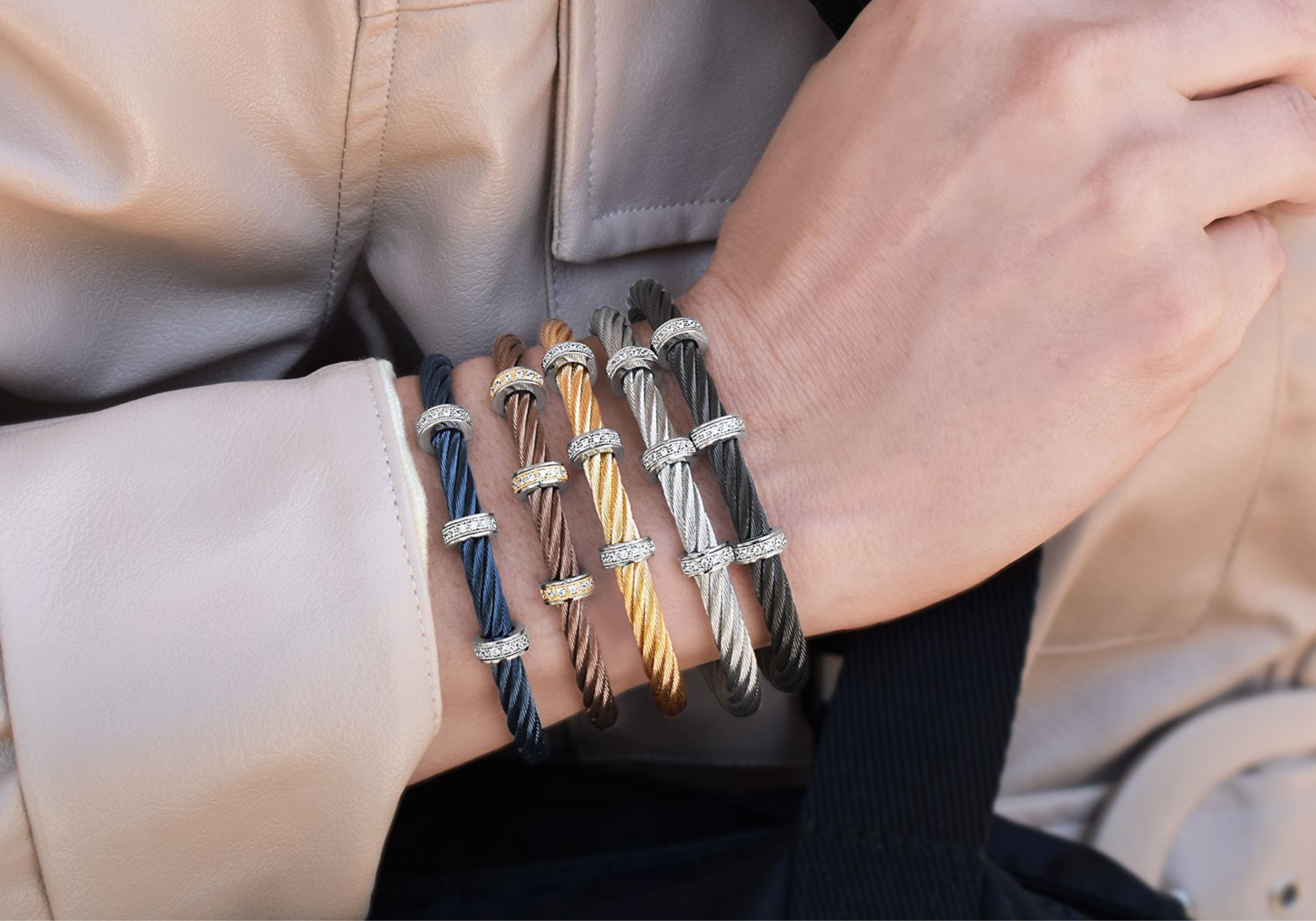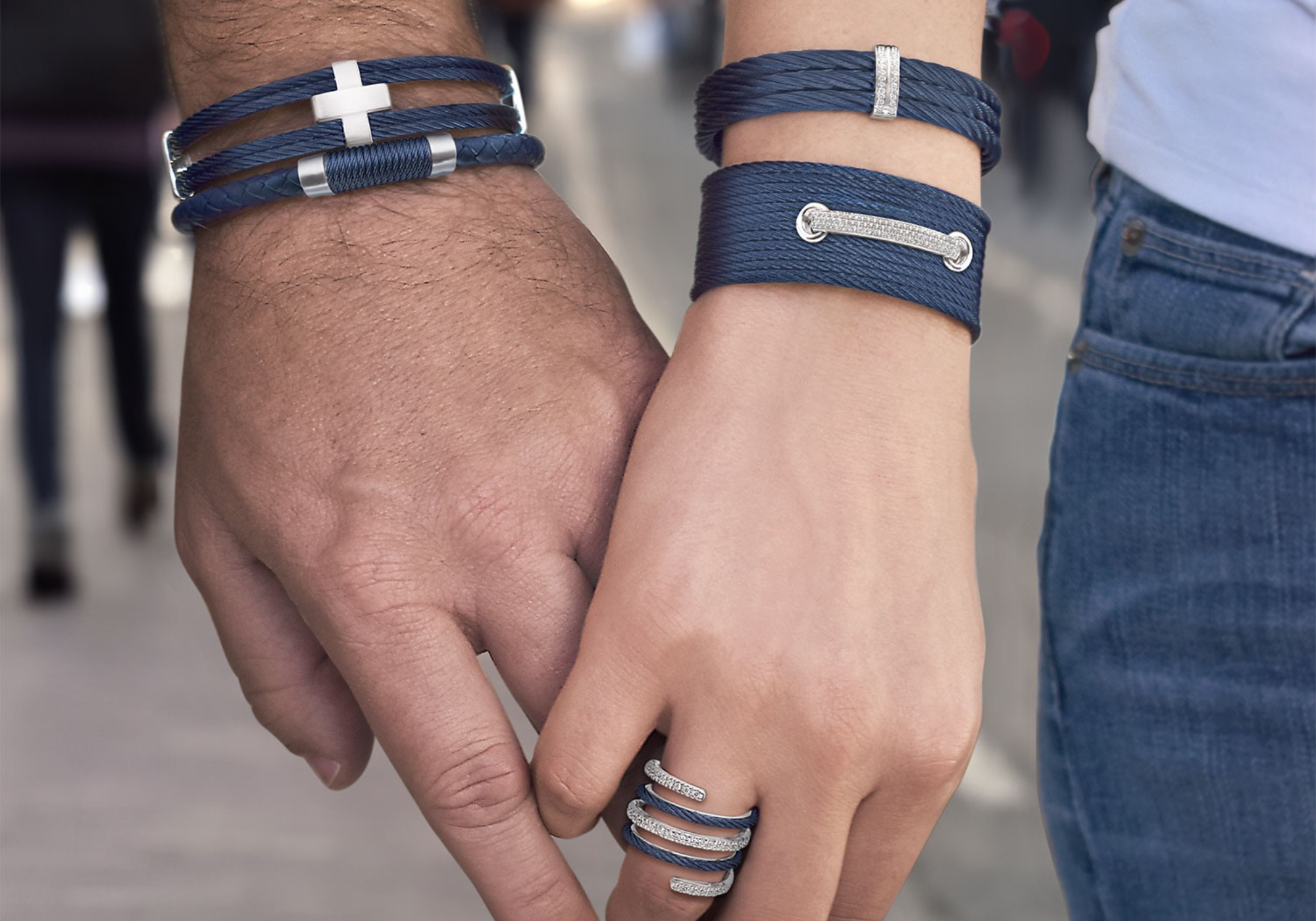 The collection features durable stainless steel cable in an array of colors created using a PVD (Physical Vapor Disposition) process.